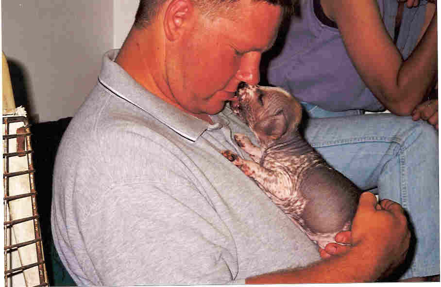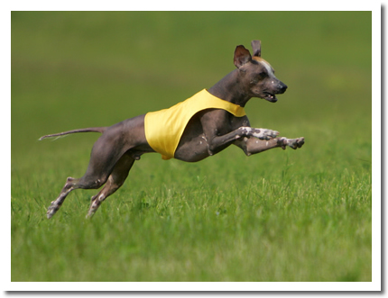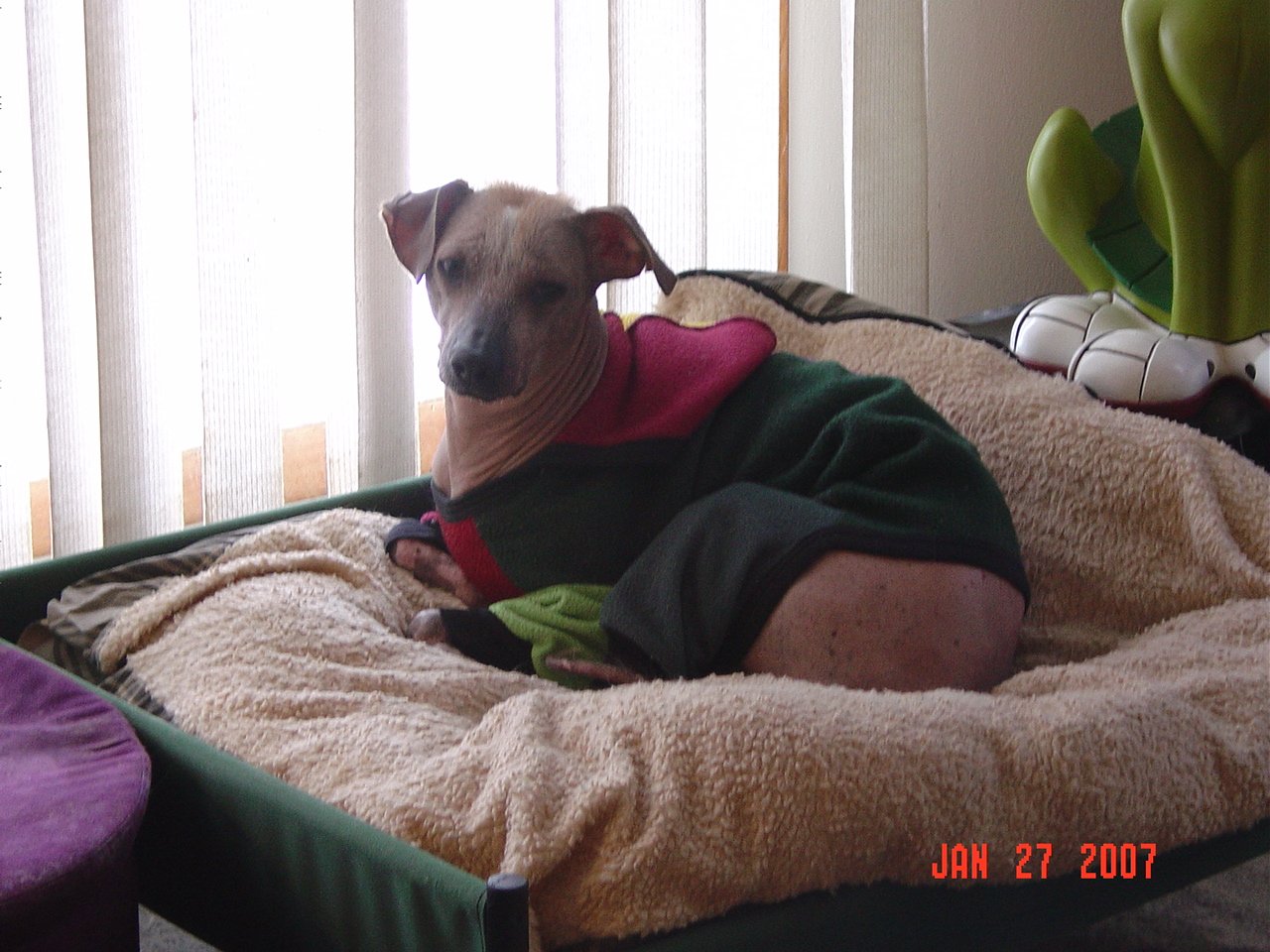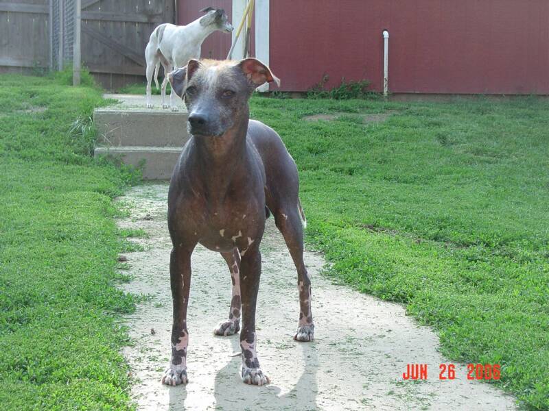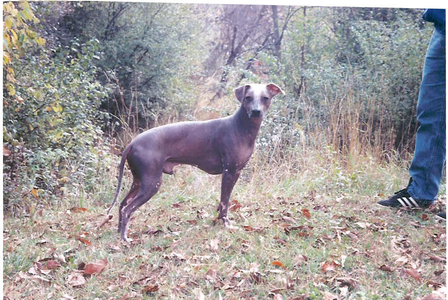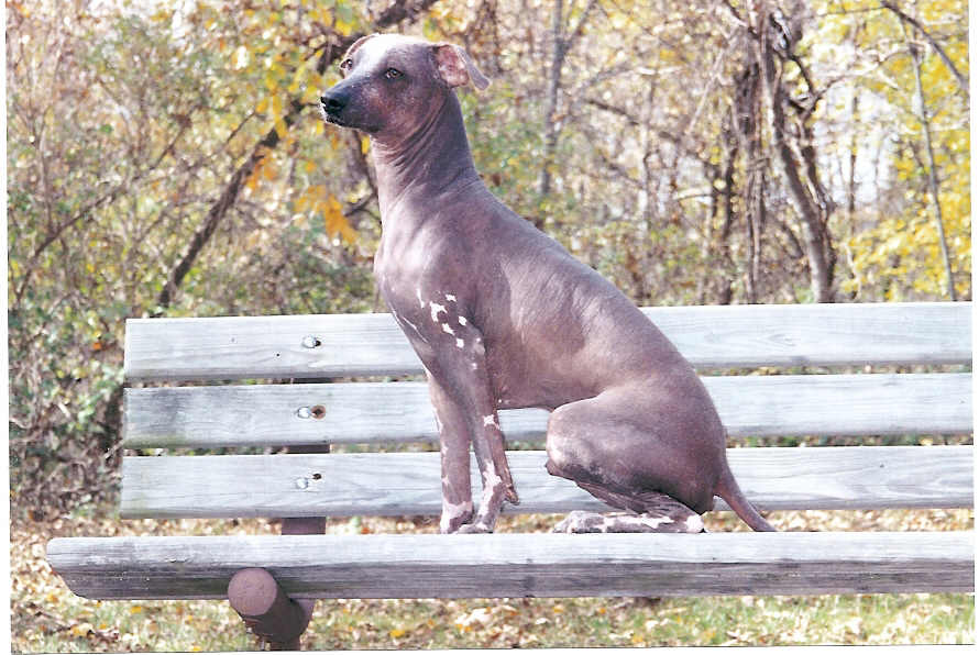 Kevin's dream of owning a Peruvian Inca Orchid and a Bubba kid came true in 2001 and Marvin's breeder, Sarah, said that Marvin was the puppy that most resembled his sire! Marvin is incredibly intelligent and his personality really draws people to him. When he was young he loved to lure course, but interestingly after Sarah passed away in 2002 from cancer, Marvin never completed another course. So he finished his coursing career 6 points short of his field championship. We tried taping Marvin's ears to be erect but gave up after his obsession with scratching them was causing damage. Marvin enjoyed years of obedience training and is our kennel club's mascot at pet fairs!